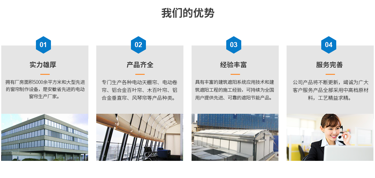 安徽恒尚智能化建筑遮陽工程有限公司是生產(chǎn)高品質(zhì)窗簾產(chǎn)品的專業(yè)公司。本公司擁有廠房面積5000余平方米,是安徽省先進的電動窗簾生產(chǎn)廠家,公司擁有大型先進的窗簾制作設(shè)備和專業(yè)的生產(chǎn)和安裝技術(shù)人員,并有著嚴密的管理和質(zhì)量體系,有效地保持了產(chǎn)品質(zhì)量。本公司具有豐富的建筑遮陽系統(tǒng)的應(yīng)用技術(shù)和建筑遮陽工程的施工經(jīng)驗,可持續(xù)為全國用戶提供先進、專業(yè)的遮陽節(jié)能產(chǎn)品,可為建筑設(shè)計院和裝飾設(shè)計工程公司提供專業(yè)的建筑遮...
